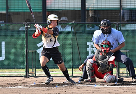 ![]() タイムリー二塁打を放つ 須藤選手 |