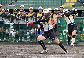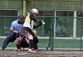 ・3回に1点を先制され、無得点のまま5回、ニ死から2番 大平、3番 須藤の連続安打とした後、4番 マケナが四球を選び、満塁のチャンスで5番 佐藤がレフトへ2点タイムリーを打ち逆転