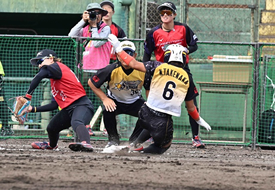 ![]() 気迫の内野安打で士気を高めた 須藤選手 |